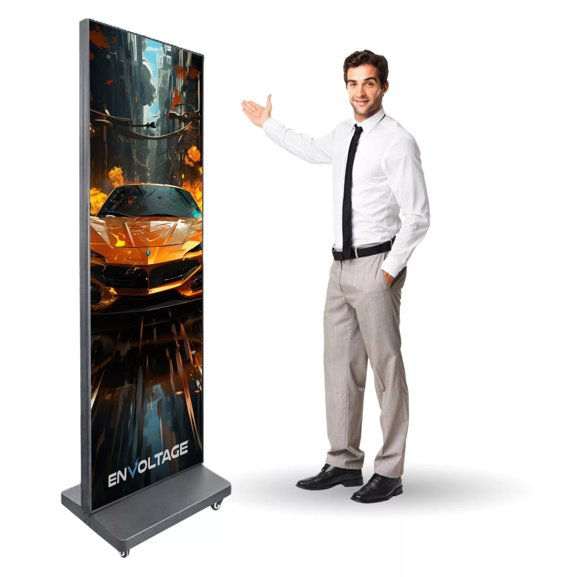 EA1920iP4 series is a flexible and convenient digital LED foldable poster LED display that supports double-sided display. The folding design saves space and is easy to move, install and store. The use of GOB packaging technology significantly improves the durability and visibility of the screen, and is suitable for a variety of commercial display scenarios.