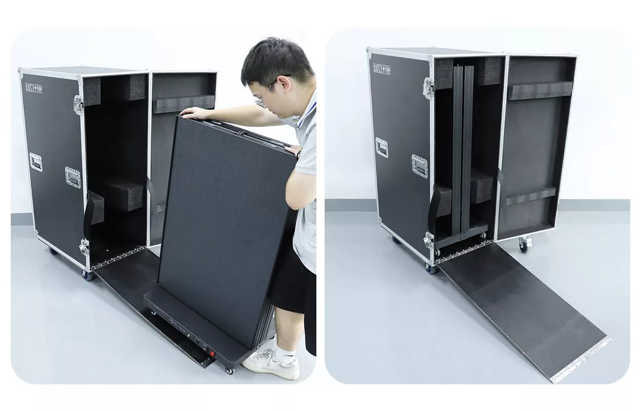 • EA1920iP4 poster screen can be easily folded into a compact flight case by one person, significantly saving shipping and storage space.