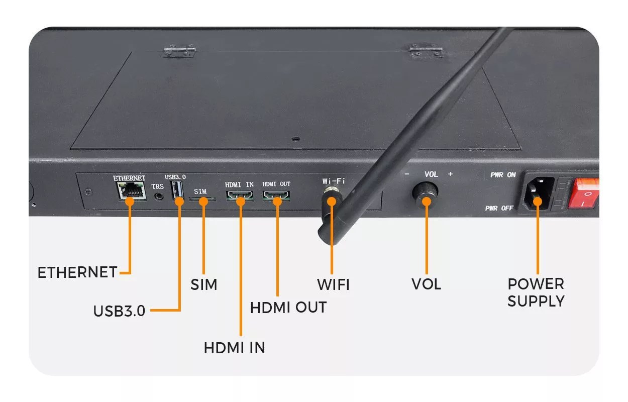 • EA1920iP4 poster LED display features a rich array of ports, including USB 3.0, HDMI, WiFi, a SIM card slot, and an Ethernet port. Its compatibility allows for easy connection to a variety of devices, meeting playback and control needs in diverse scenarios.