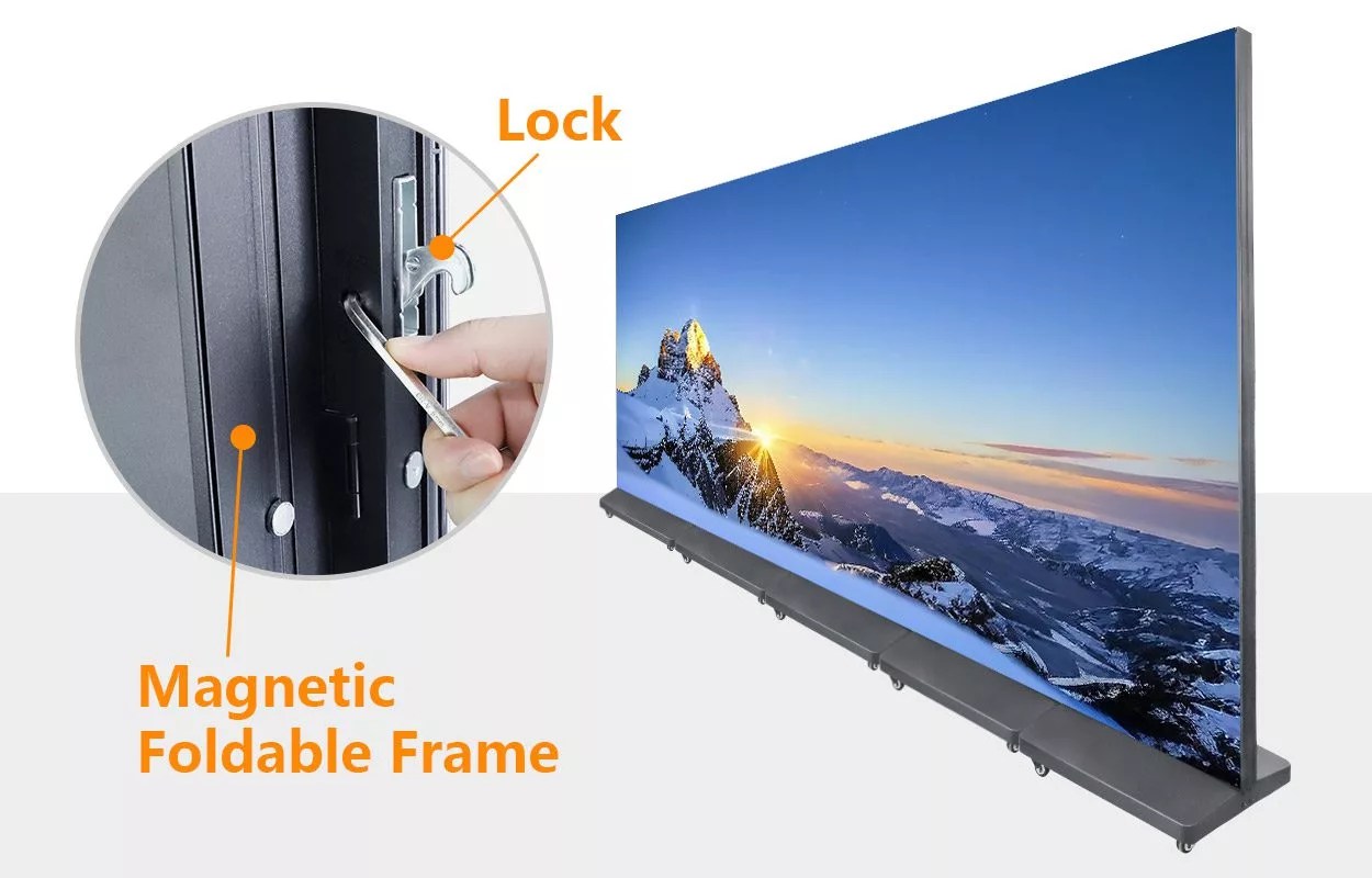 • EA1920iP4 poster screen features a foldable frame and a quick-lock mechanism, allowing for quick splicing and multiple screen combinations, making it easy to create large-screen displays.